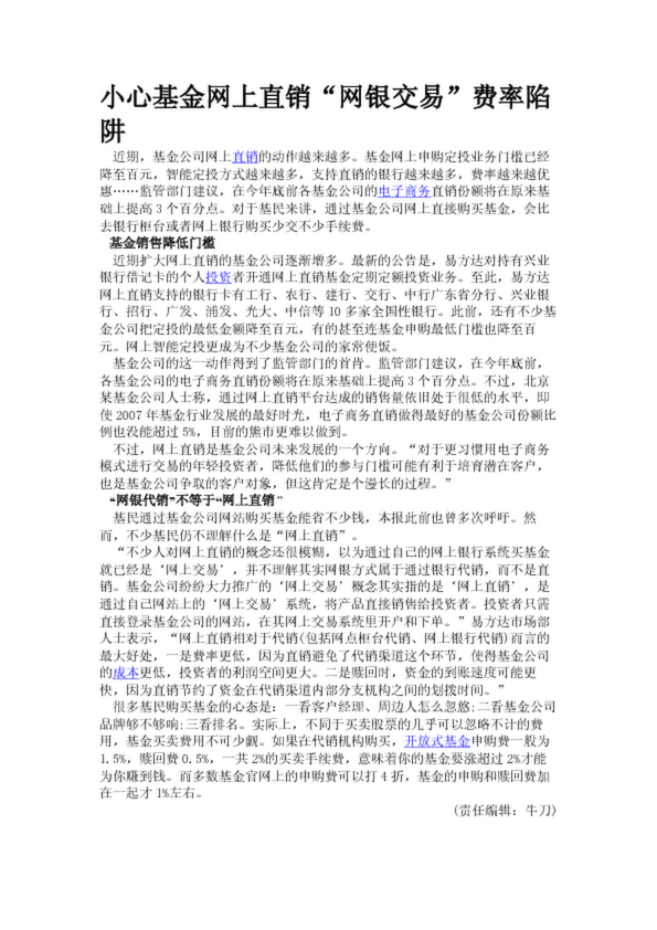 小心基金網(wǎng)上直銷“網(wǎng)銀交易”費率陷阱