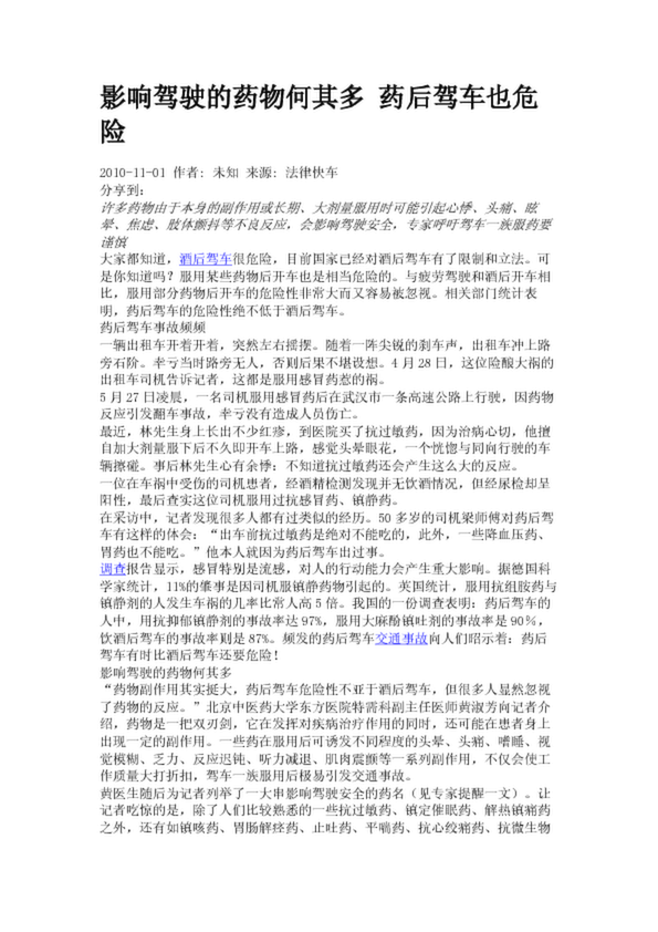 影響駕駛的藥物何其多 藥后駕車也危險