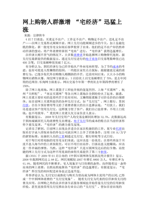 網(wǎng)上購物人群激增 “宅經(jīng)濟”迅猛上漲