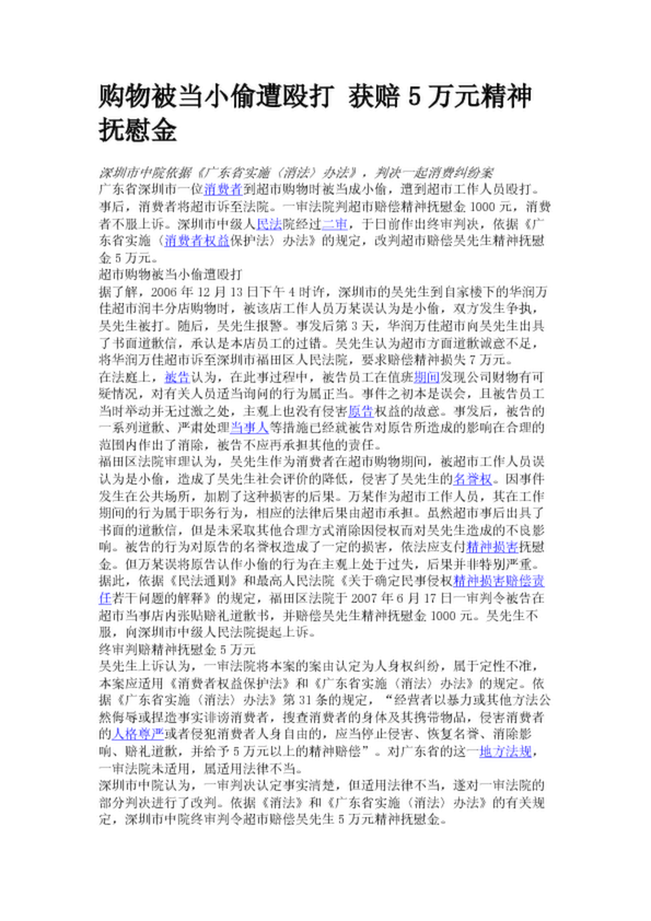 購(gòu)物被當(dāng)小偷遭毆打 獲賠5萬(wàn)元精神撫慰金